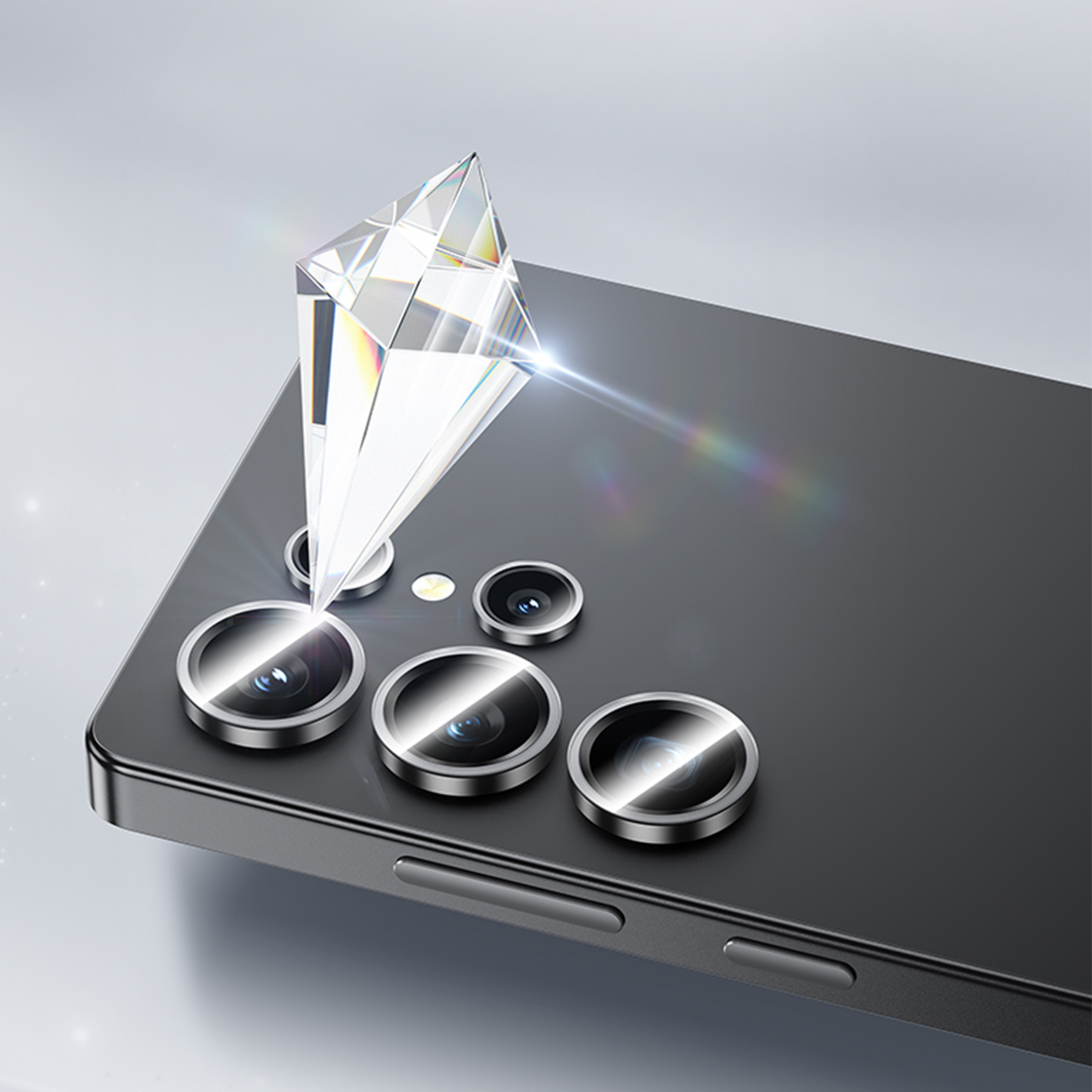 Скло має твердість 9H, що дозволяє ефективно протистояти подряпинам, потертостям та ударам — навіть у повсякденному активному використанні. Матеріали, з яких виготовлений аксесуар, відрізняються високою прозорістю, що гарантує збереження якості знімків без спотворення кольору або втрати чіткості. Проста інсталяція, завдяки планці для поклейки, мінімізує ризик появи бульбашок чи зміщення під час монтажу.
