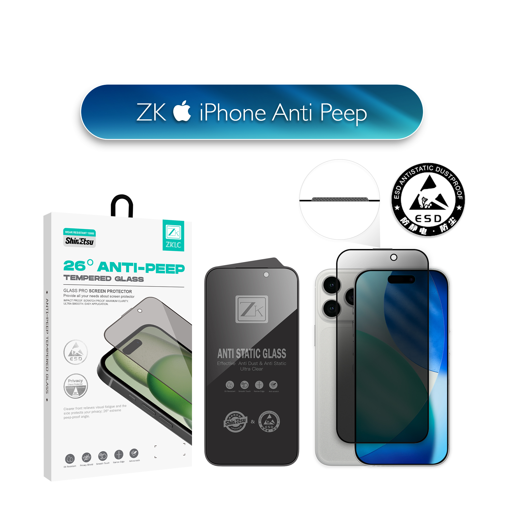 Захисне скло ZK для iPhone 17 Pro 2.5D Anti Peep